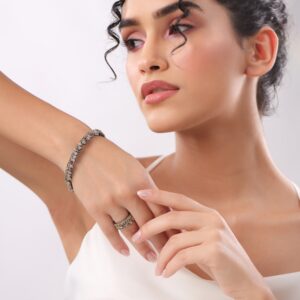 Dive into a world of boundless beauty and infinite possibilities with our Myriad Bangle from the esteemed Eternity Collection. Handcrafted with meticulous precision and adorned with an array of exquisitediamonds, this bangle encapsulates the essence of elegance and grace. As you slip it onto your wrist, feel the surge of energy and confidence that comes from embracing your true self. Let the Myriad Bangle serve as a constant reminder that you are capable of achieving anything you set your mind to. Wear it with pride and embark on a journey of self-discovery, unleashing your unlimited potential with every step you take.