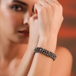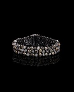 Introducing our Spectacular Rough Diamond Bracelet. Crafted with precision, this statement piece is the embodiment of strength and grace, just like the attributes of an independent woman. Each raw rough diamond in the bundle has been expertly handpicked and arranged tightly together, creating a stunning amalgamation that enriches the whole piece. Each diamond is unique and beautiful in its own way, representing the uniqueness of the wearer. The mesmerizing linking of the bracelet is meticulously done, ensuring that its beauty is visible from all angles, even though the intricate details may not be immediately apparent at the surface. With its outstanding sparkle, this bracelet is a true testament to the uncompromising quality and beauty that every independent woman deserves.