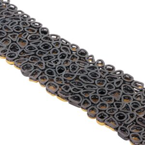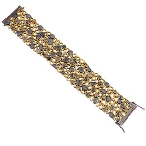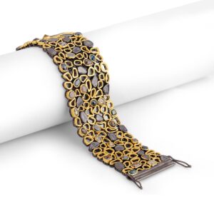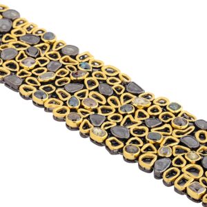 Indulge in the ultimate craftsmanship of our exquisite bracelet, meticulously designed to perfection. This stunning piece features 208 hand-carved collets, painstakingly riveted together to create a mesmerizing statement piece that radiates an unparalleled sense of elegance and earthly charm. Our skilled artisans invest their time and expertise in hand-carving each collet, ensuring that they fit together flawlessly to create a remarkable visual spectacle. The result is a stunning bracelet that emanates an exquisite movement with a captivating natural palette. Every element of our bracelet has been crafted with meticulous attention to detail. From the intricate carving of each collet to its perfect placement, this piece is a true work of art, guaranteed to captivate your imagination.