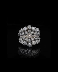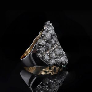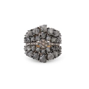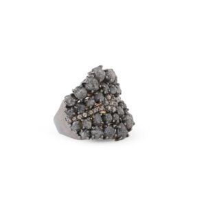 This Ring is a captivating expression of the beauty and sweetness of love. The delicate band, adorned with exquisite Brown rose cut round diamonds, creates a stunning visual display of love’s enchantment.Nestled among these diamonds are pure Rough diamonds, which add an extra layer of depth and tenderness, symbolizing the multitude of love we experience in our lives – love for others, love for nature, and most importantly, love for ourselves.This ring serves as a radiant reminder that our souls are surrounded by love in all its forms. Let the Love Flower Ring be a reflection of the love you carry within, a radiant blossom that signifies the beauty of love’s embrace in your life.