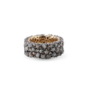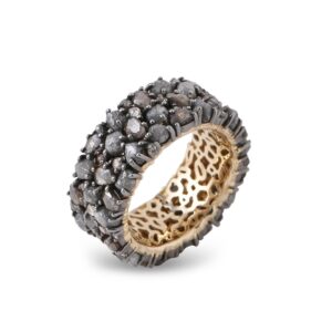 This Ring is a symbol of strength and commitment, adorned with stunning Mined, Multi-color opaque rose cut, and Brown rose cut diamonds that create an impenetrable shield of dazzling radiance. Its design evokes a sense of devotion to oneself, a call to stand firm in the beauty and uniqueness that makes you who you are.