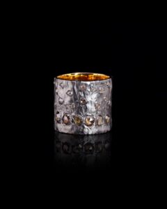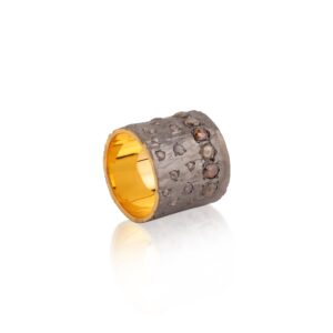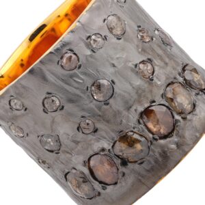 Introducing our exquisite Unbound Astral Ring, a reminder that unbridled desires lead to the exploration of one’s strength and abilities. This ring is a symbol of empowerment for anyone who desires to explore their potential. The delicate brown rose-cut diamonds are arranged in their natural, raw form, exploring their way around the surface of the ring, reflecting the unique qualities of the individual wearer. The pure shine of the ring comes from the use of completely pure individual elements, which come together to create a beautiful and striking piece of jewelry.