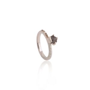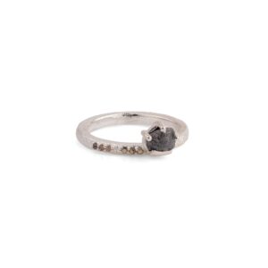 This ring is a symbol of simplicity and silence. It features a unique mined diamond that quietly shines with your inner beauty. The ring is crafted from recycled sterling silver, a material that reflects your simplicity, poise, and elegance. The ring is a mindful luxury that respects the environment and your values. This is a ring for the one who knows her worth and her impact. Treat yourself to the charm of the new A.Deitiy collection.