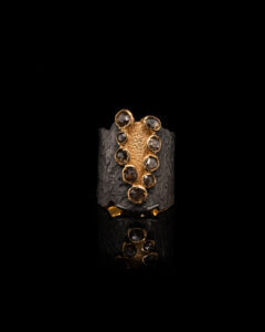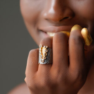 Combining the raw beauty of volcanic stones with expert craftsmanship, each element of the Marches Ring has been carefully designed and flawlessly executed. The result is a striking balance between the rugged and the refined, making this ring an exquisite testament to the artistry of our skilled artisans. This Ring is not just a fashion accessory, but a timeless keepsake that captures the essence of nature’s unstoppable force. Its distinctive design ensures that it will be treasured for years to come, a testament to the wearer’s bold individuality and unstoppable spirit.