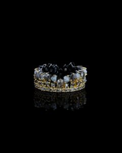 Harness the power of infinite beauty with our Myriad Ring from the coveted Eternity Collection. Impeccably handcrafted, each exquisite detail tells a captivating tale of elegance and grace. Embellished with a myriad of sparkling gemstones, this ring is a testament to the unique brilliance that resides within every individual. Let the Myriad Ring be a symbol of your inner radiance and a reminder to embrace your limitless potential. Wear it proudly as you embark on a journey of self-discovery and self-expression, allowing your true beauty to shine through in every facet of your life.