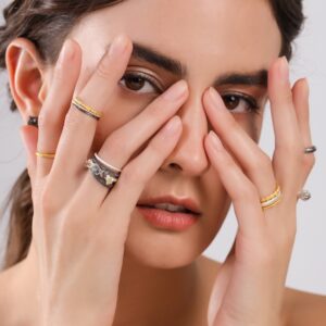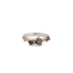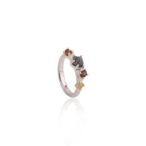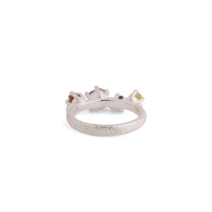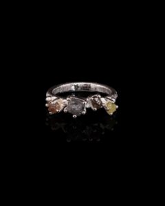 This ring is a tribute to the goddess in you, who is rich in wisdom and grace. It is crafted from recycled sterling silver and adorned with sparkling diamonds that form a vine-like pattern. The diamonds are not perfectly aligned, but rather scattered in a natural and organic way, celebrating the beauty of imperfection. This ring is a symbol of self-love and appreciation, as well as a reminder of the wonders of nature. A.Deitiy is the artisan behind this exquisite handcrafted jewelry.