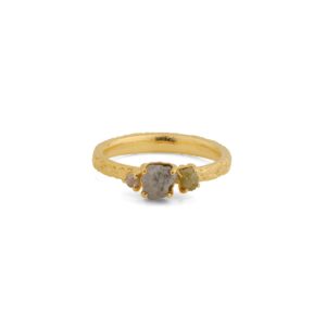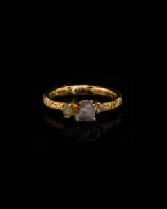 A potpourri of raw diamonds in different shapes, sizes, and colors. Each ethereal in their own sense, proudly owning their natural beauty. Own the individualism and charisma you add to the potpourri of the world. A ring that sings the beauty of diversity. A recycled sterling silver ring with eco-gentle raw diamonds mindfully designed by A.Deitiy.