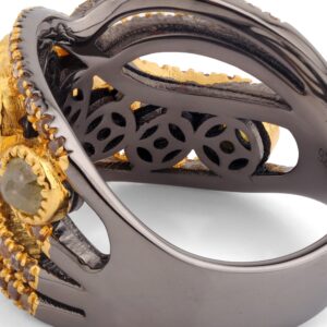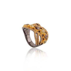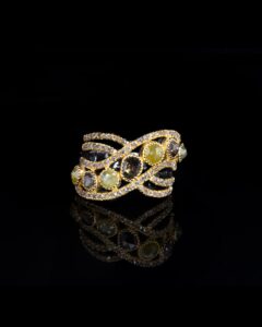 Introducing a true masterpiece crafted to capture the essence of timeless beauty. The twisted diamond border of this exquisite ring will smoothly embrace your finger, ensuring a perfect fit that is as comfortable as it is captivating.The color contrast of the diamonds beautifully complement each other and elevate the ring’s beauty to the next level. Carefully placed by expert craftsmen, each diamond has been chosen and arranged to create a mesmerizing array of colors that add depth and enchantment to the ring.With its intricate design and superior craftsmanship, this Ring is a perfect combination of elegance and sophistication. This ring is sure to turn heads and become an enduring symbol of timeless beauty that will be cherished for years to come.